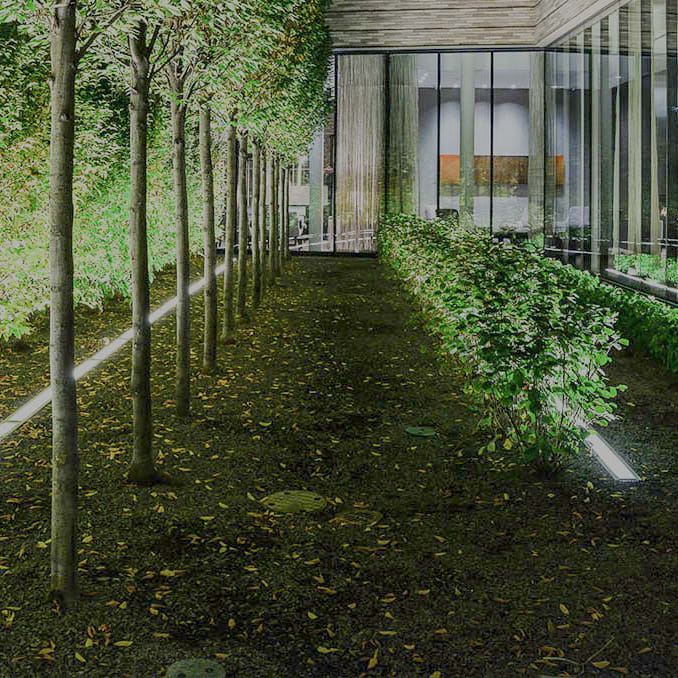 A bi-level urban garden designed in a theatrical "stage" setting will provide a welcoming site to Millennium Place owners from porte-cochere and a peaceful Boston Common park inspired background from the Owner's Lounge.