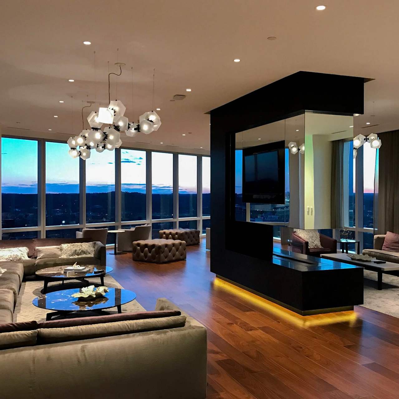 Gather with friends and family to explore new tastes, techniques and cuisines in a kitchen equipped with professional-grade Wolf & Subzero appliances and island seating. After your guests have left, take in the city skyline and unwind.