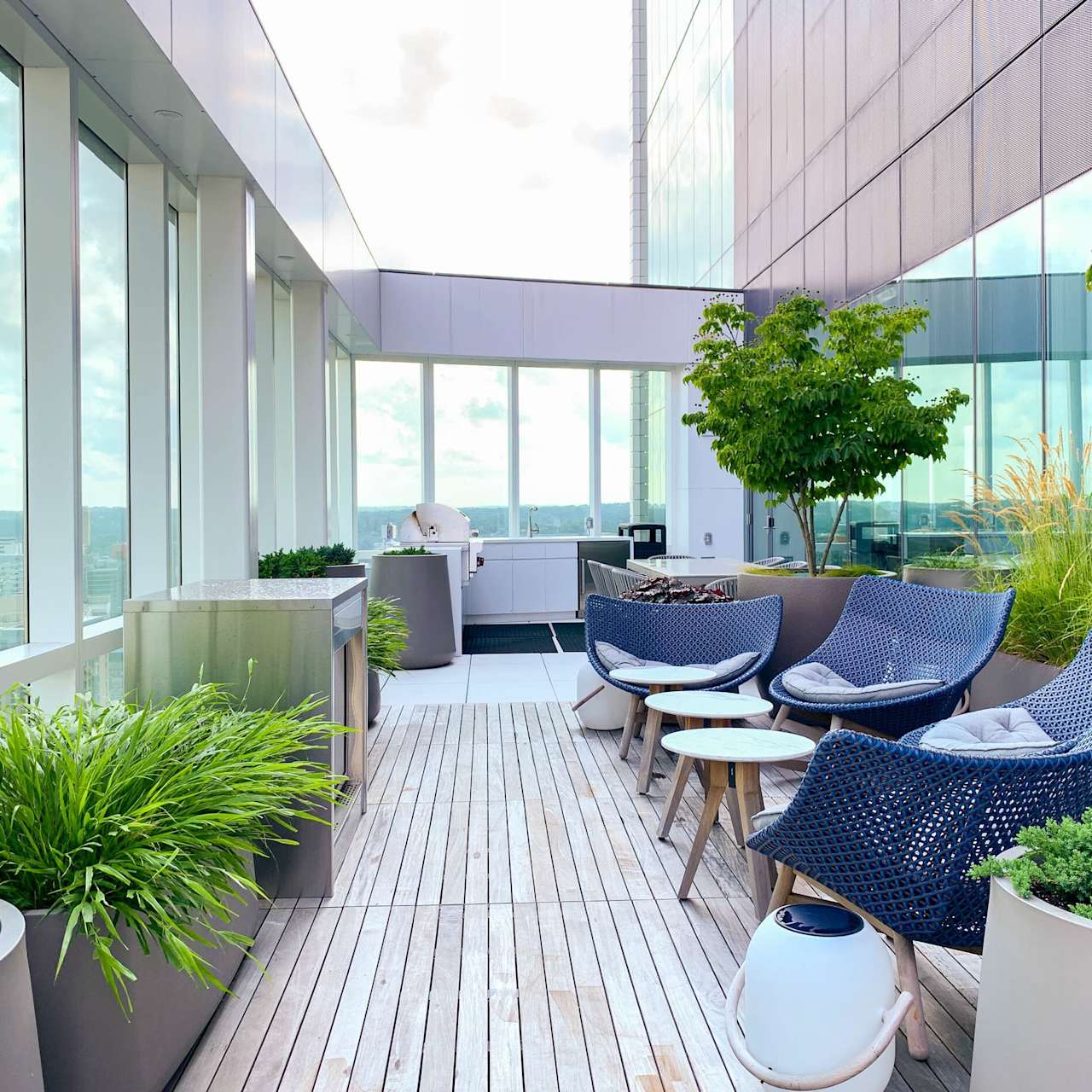 Skydeck with kitchen, BBQ grills and gas fireplace